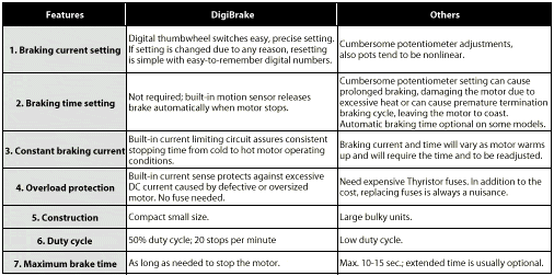 The following table compares the salient features of DigiBrake with brakes manufactured by many competitors.